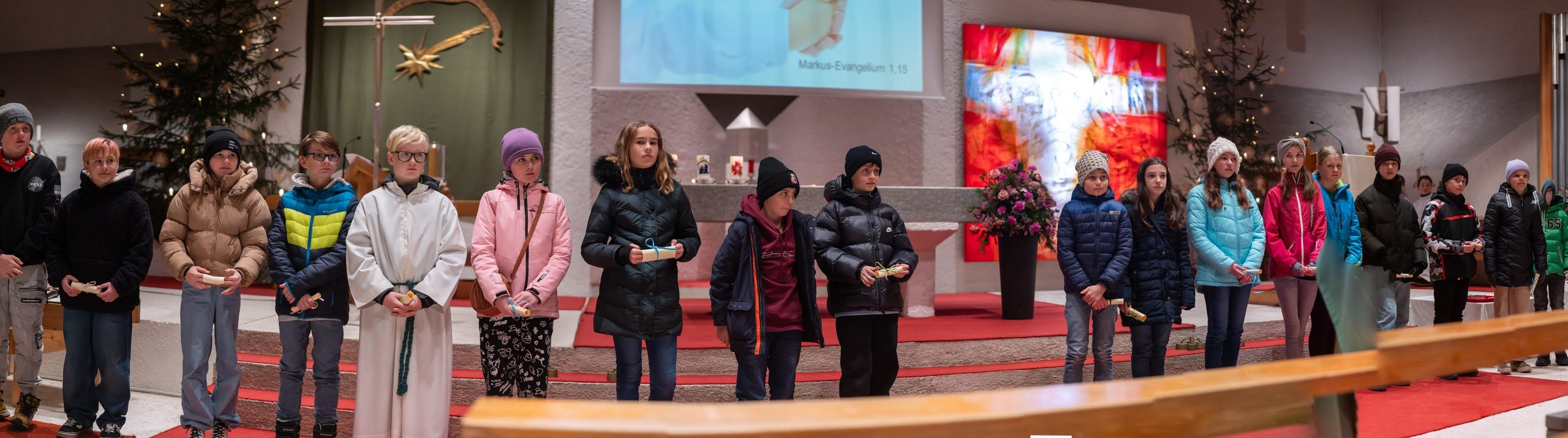 Am Samstag, dem 20.1. fand das erste Treffen der Firmlinge zur Firmvorbereitung 2024 statt. Nach einer gemeinsamen Einheit zu den Themen Brot und Messe, wurde sich gemeinsam auf den Weg in die Pfarrkirche gemacht, wo die Firmlinge bei der Jugendmesse vorgestellt wurden. Die Firmlinge halfen fleißig bei der Gestaltung der Messe mit, sei es musikalisch, durchs Lesen oder bei der Predigt, weshalb es ein wirklich sehr schöner und besonderer Gottesdienst war. Während der Messe wurde dann außerdem für jeden Firmling einen Gebetspaten gefunden und anschließend gab es für die Firmlinge noch die Möglichkeit, den Abend in den Gruppenräumen bei Spielen oder Getränken ausklingen zu lassen.