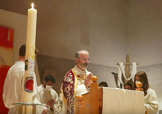 21.00 Uhr Osternachtfeier; Osterkerzen können vor der Kirche erworben werden